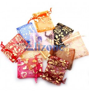 Bolsitas de organza con diseño estampado. Tamaño: 7x9 cms. Colores: Calipso, lila, rojo, rosado,amarillo, dorado y verde agua.