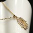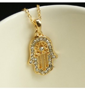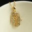 Hermoso collar de la mano de fátima color dorado con piedras blancas.
